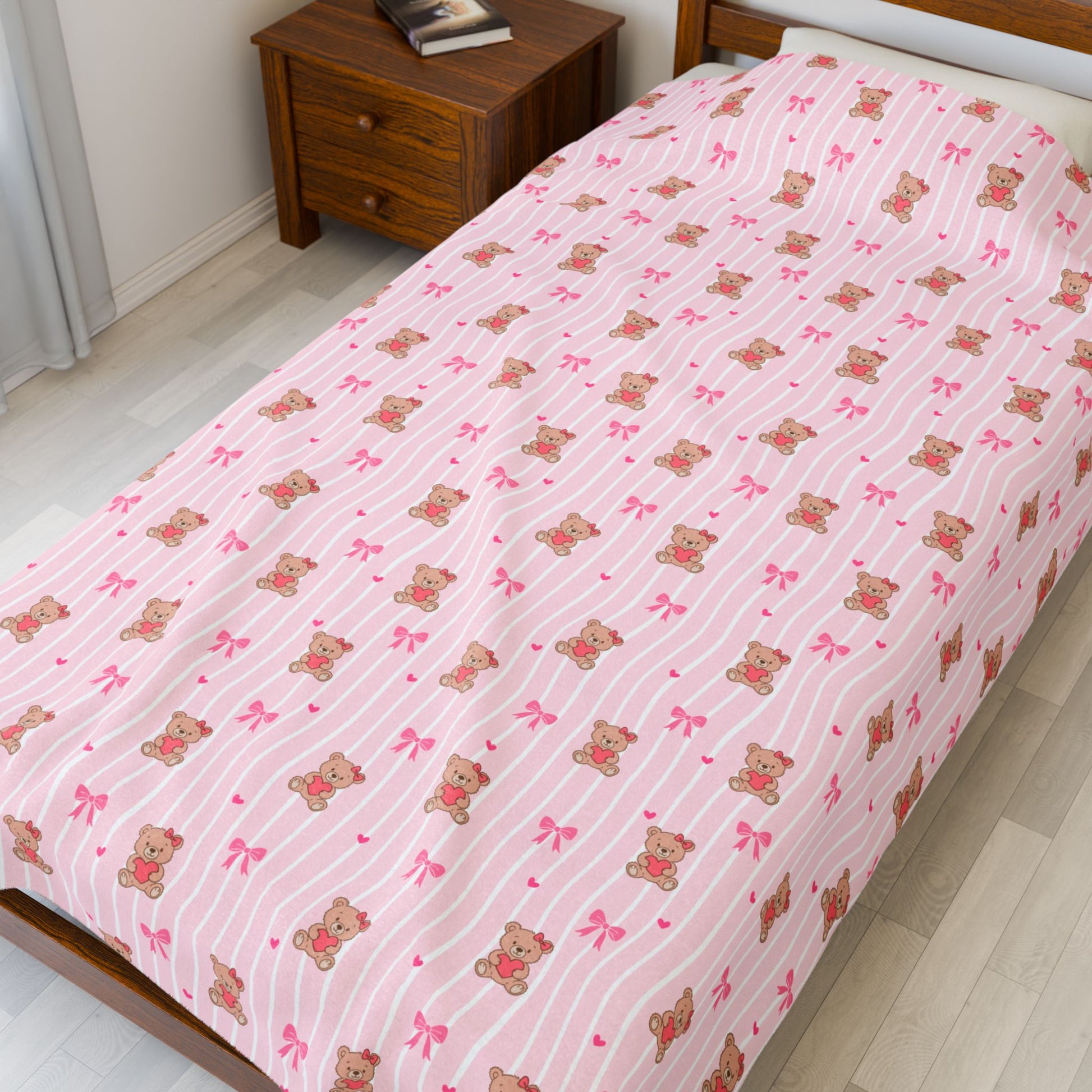 Plush Baby Blanket — Pink Teddy Bear Velveteen